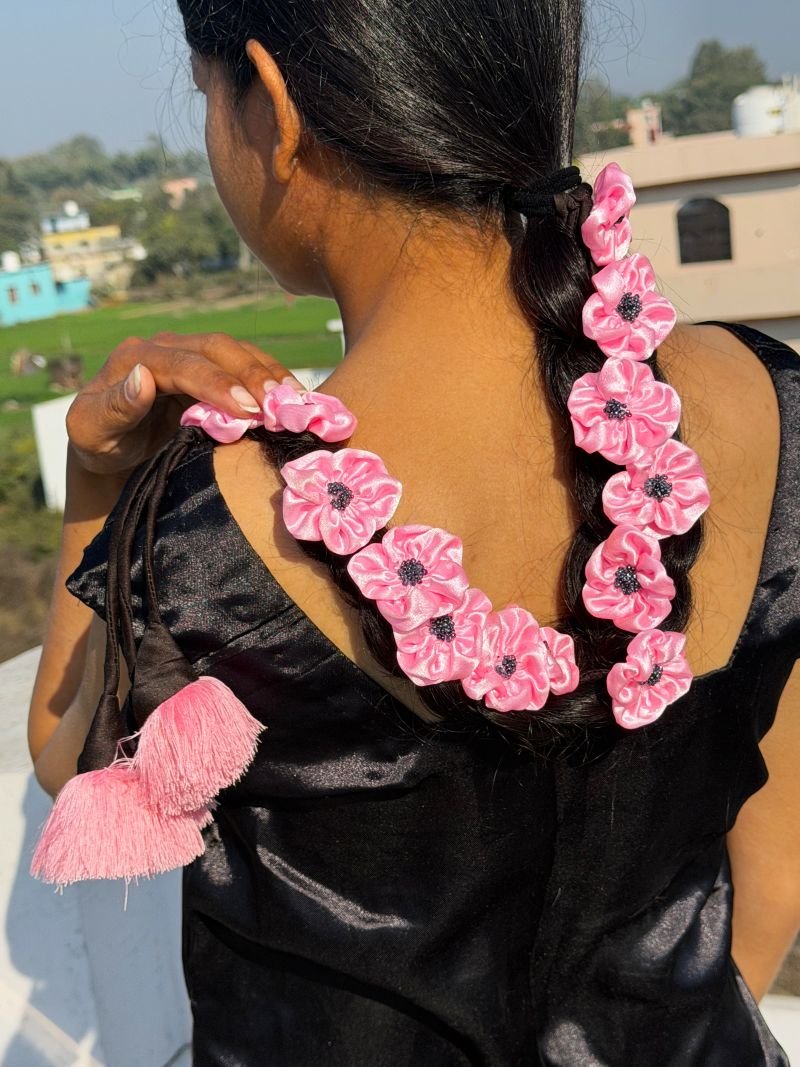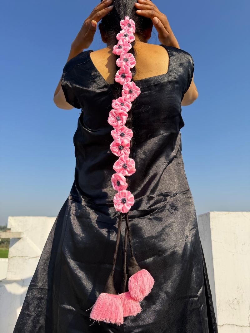 - Flaunt your gorgeous hair with our beautifully handcrafted Pink Satin Parandi/Lachha Dori.