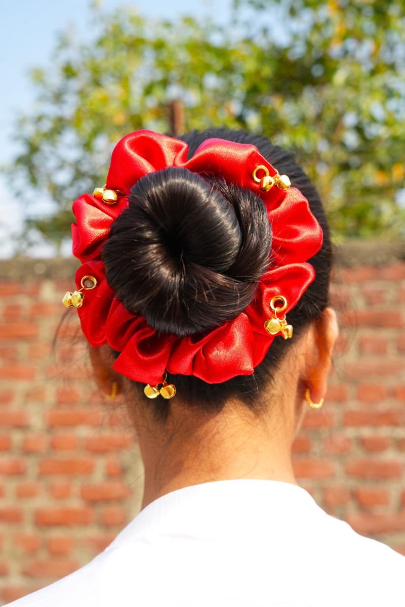 Red Ghungroo Scrunchie M-Size