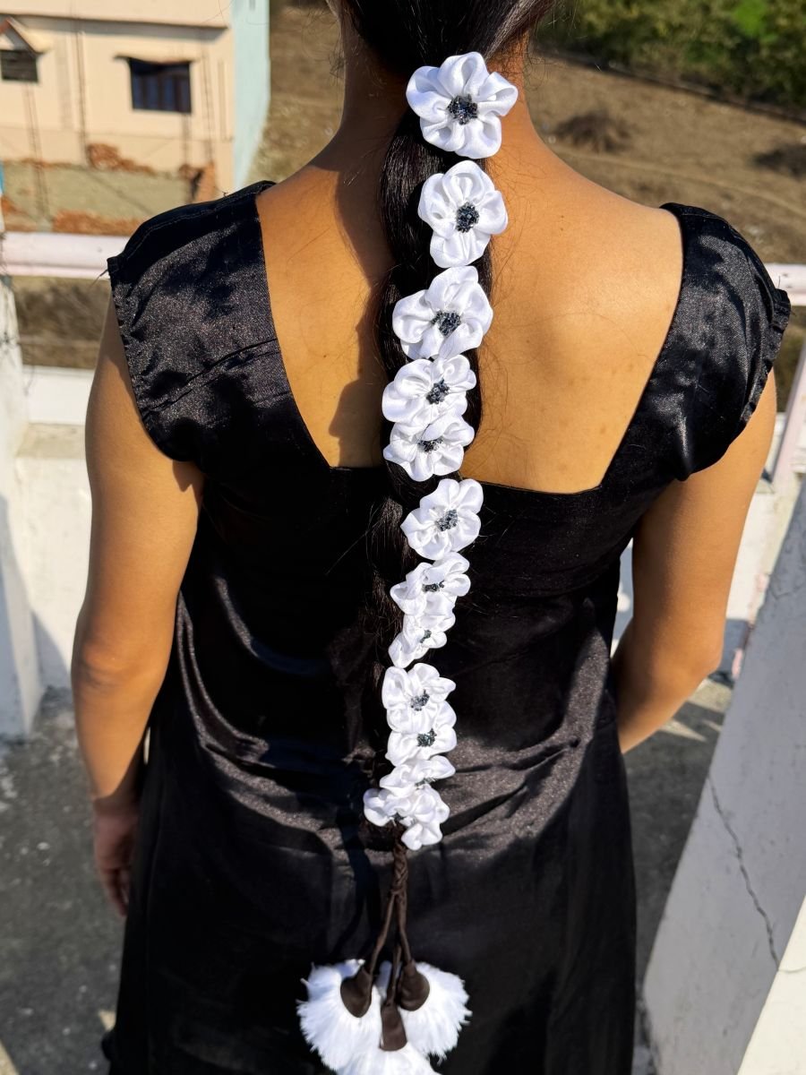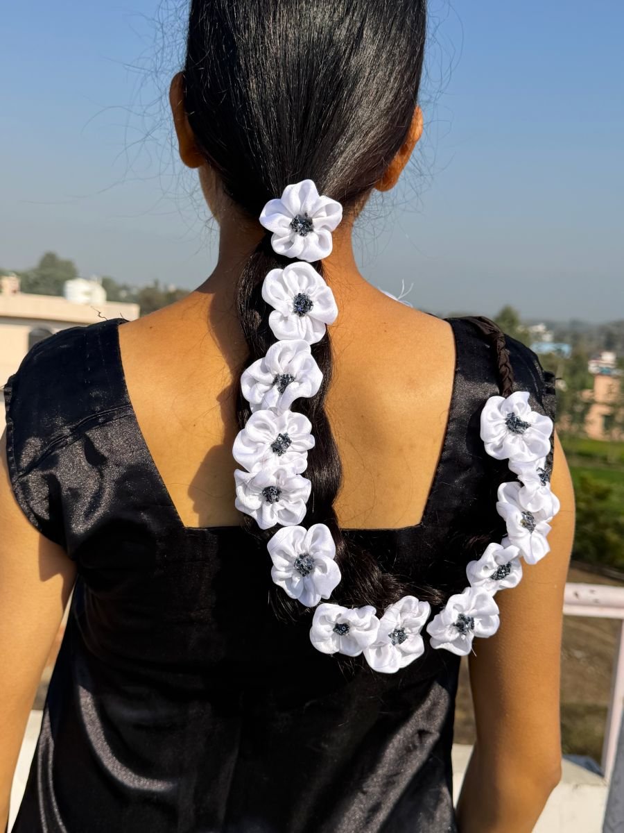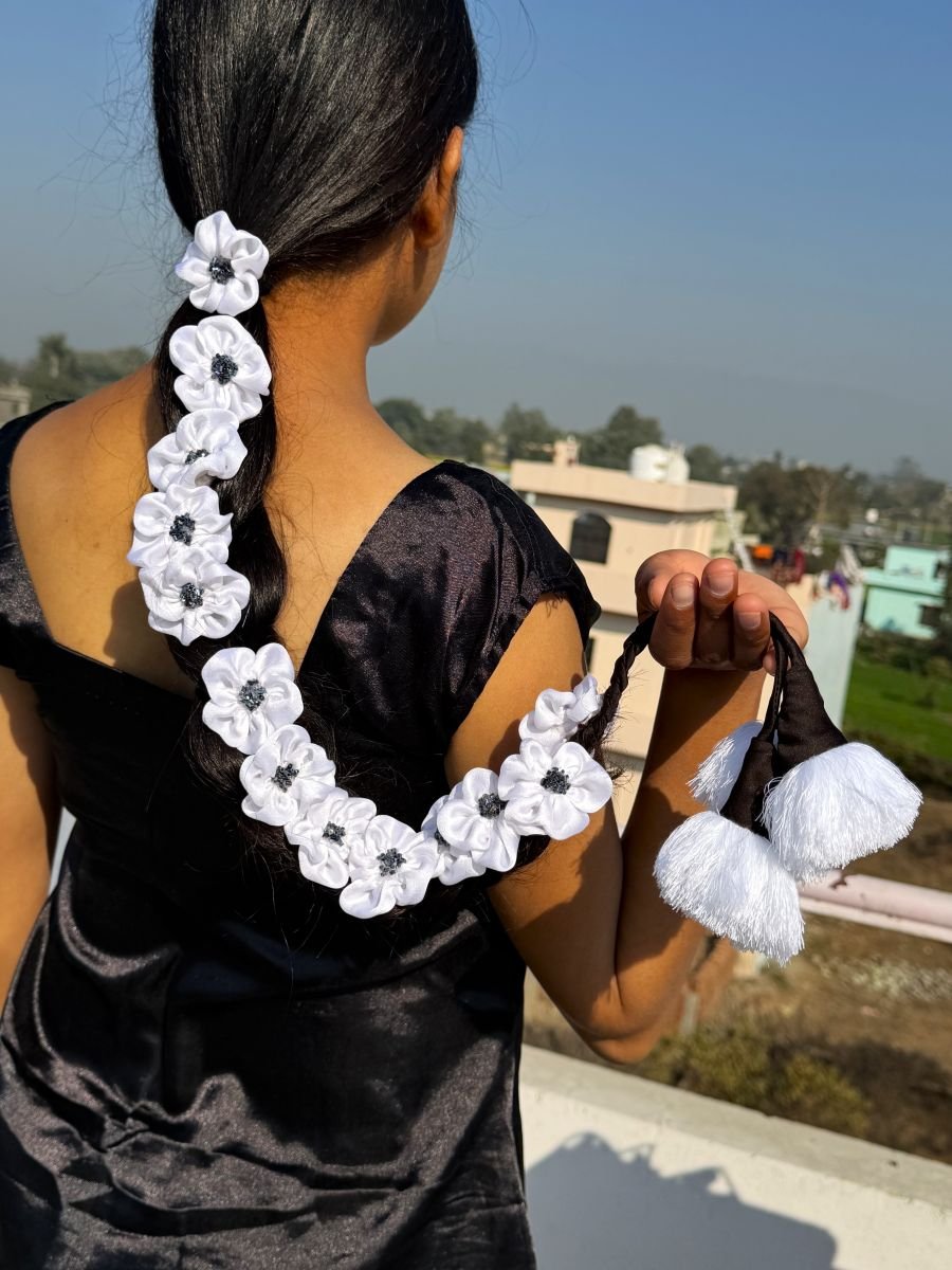 - Flaunt your gorgeous hair with our beautifully handcrafted White Satin Parandi/Lachha Dori.